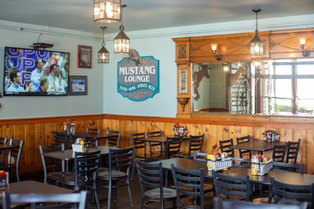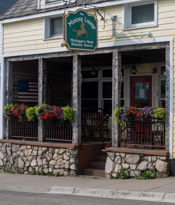 Mustang Lounge, family owned and operated since 1964 was originally built in the 1780’s as a fur trading warehouse. The original building was constructed using a French- Canadian technique known as piece on piece joined by mortise and tenon. The building was remodeled in 2008 using the original timbers. Making it Michigan’s Most Historic Tavern.